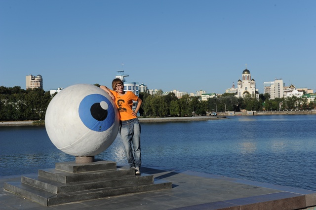 La ideo estis simpla: ni decidis fotiĝi kun la vorto ESPERANTO ĉe la vidindaĵoj kaj simple belaj lokoj en la centro de la urbo, kie kutime ŝatas ripozi aŭ amase trapasas jekaterinburganoj. Tiel ni intencis sen altruda reklamo altiri atenton de la loĝantaro al Esperanto nur per la procedo de la fotado mem, respondante, kompreneble, je eventuale aperontaj demandoj de la plej scivolemaj homoj.