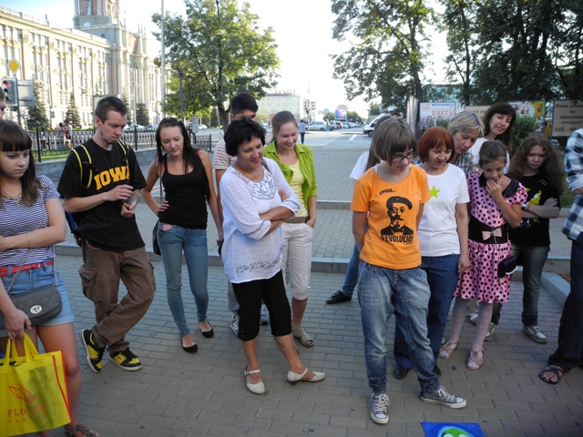 Ĉio sukcese pasis laŭ la plano. Ni gaje fotiĝis, homoj ne povis ne rimarki nin, kaj reagis absolute pozitive. Kelkfoje nian grupon fotis per siaj fotiloj la promenantoj, kelkfoje aliĝis infanoj kaj ekstaris malantaŭ niaj dorsoj por fotiĝi kune kun ni. Kelkfoje ni eĉ povis mencii antaŭ la amaso, ke la internacia lingvo Esperanto antaŭ 5 tagoj havis la 125-jaran jubileon.