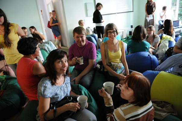 Dum la te-kafa pauzo en la klubejo "Komunikator"