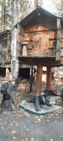 Tre plaĉis al ni komunikiĝi kaj fotiĝi kun simpatiaj loĝantoj de la parko: nordaj cervoj, dresita nigra korvo, belaj blankaj anseroj.