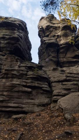 La rokojn konsistigas ŝtonecaj "blinoj", kiuj kuŝas unu sur la alia. Starante ĉe la piedo de la rokaro ni admiris tiun ĉi miraklon, kreitan de la naturo. Estas kompeneble, ke ni ankaŭ grimpis supren, kaj tiam surpinte al nia rigardo malfermiĝis belegaj vidaĵoj de senlima arbaro kaj de la lago Isetskoje iom fore. Certe neniuj fotoj povas transdoni la venton, aŭtunajn arbarodorojn, perceptojn de vasteco ĉirkaue kaj de grandeco de la rokoj...
