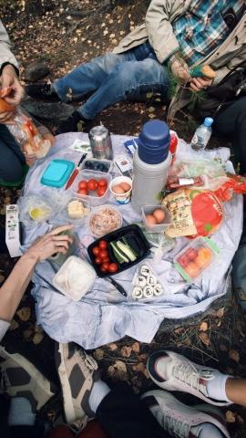 Fine de nia turisma marŝo ni trovis oportunan placeton kaj organizis tie piknikon.